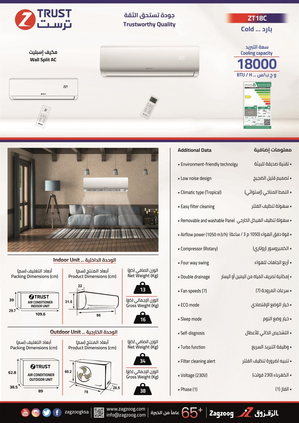 مكيف ز.ترست ايليت جداري 18000 وحدة ، بارد