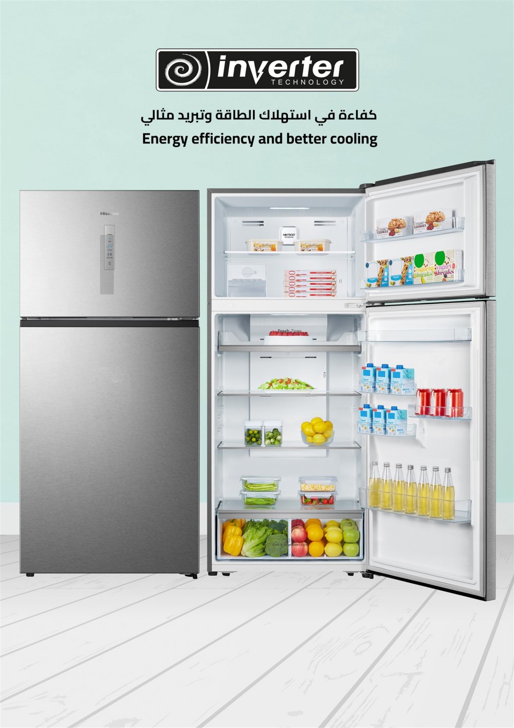 ثلاجة هايسنس (17.8) قدم3 ، (504) لتر ، انفرتر