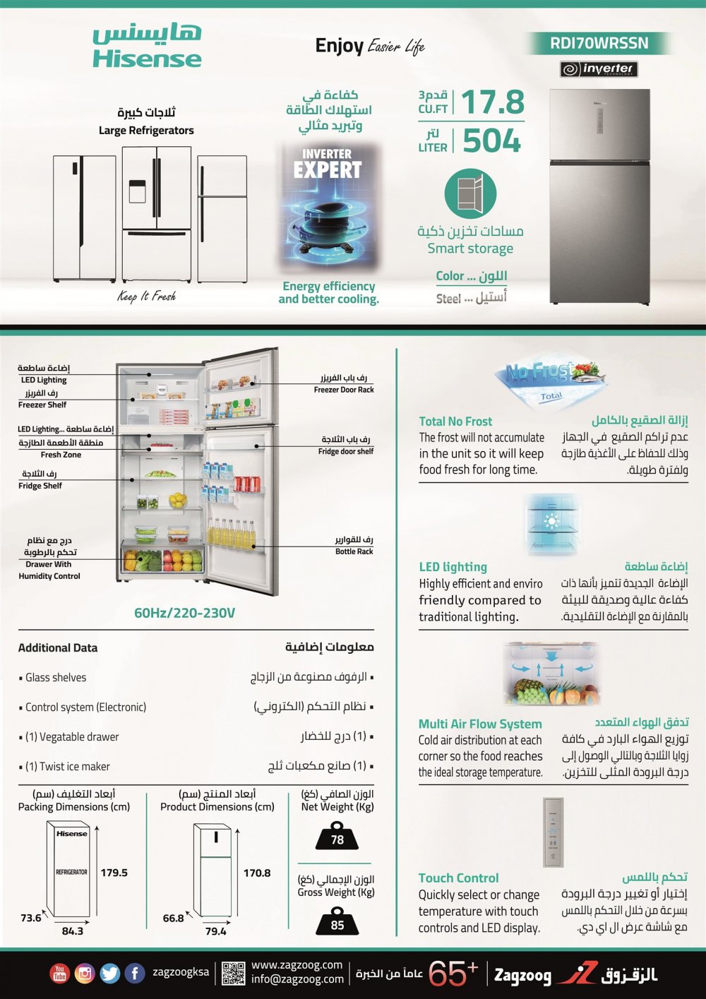 - نوع المنتج : ثلاجة 17.8 قدم