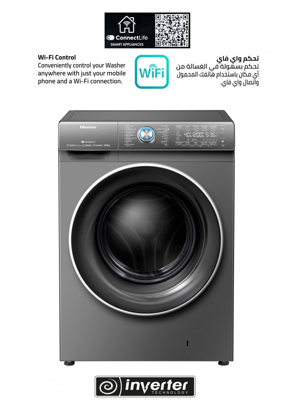 غسالة ومجفف هايسنس 8/12 كيلو، 14برنامج، انفرتر، واي فاي