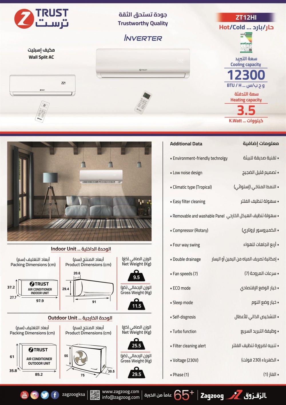 مكيف ز.ترست ايليت جداري 21000 وحدة ، انفرتر ، حار/ بارد