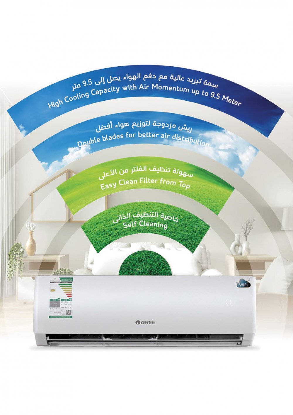 مكيف جرى جدارى 32200 وحدة ، واي فاي ، بارد