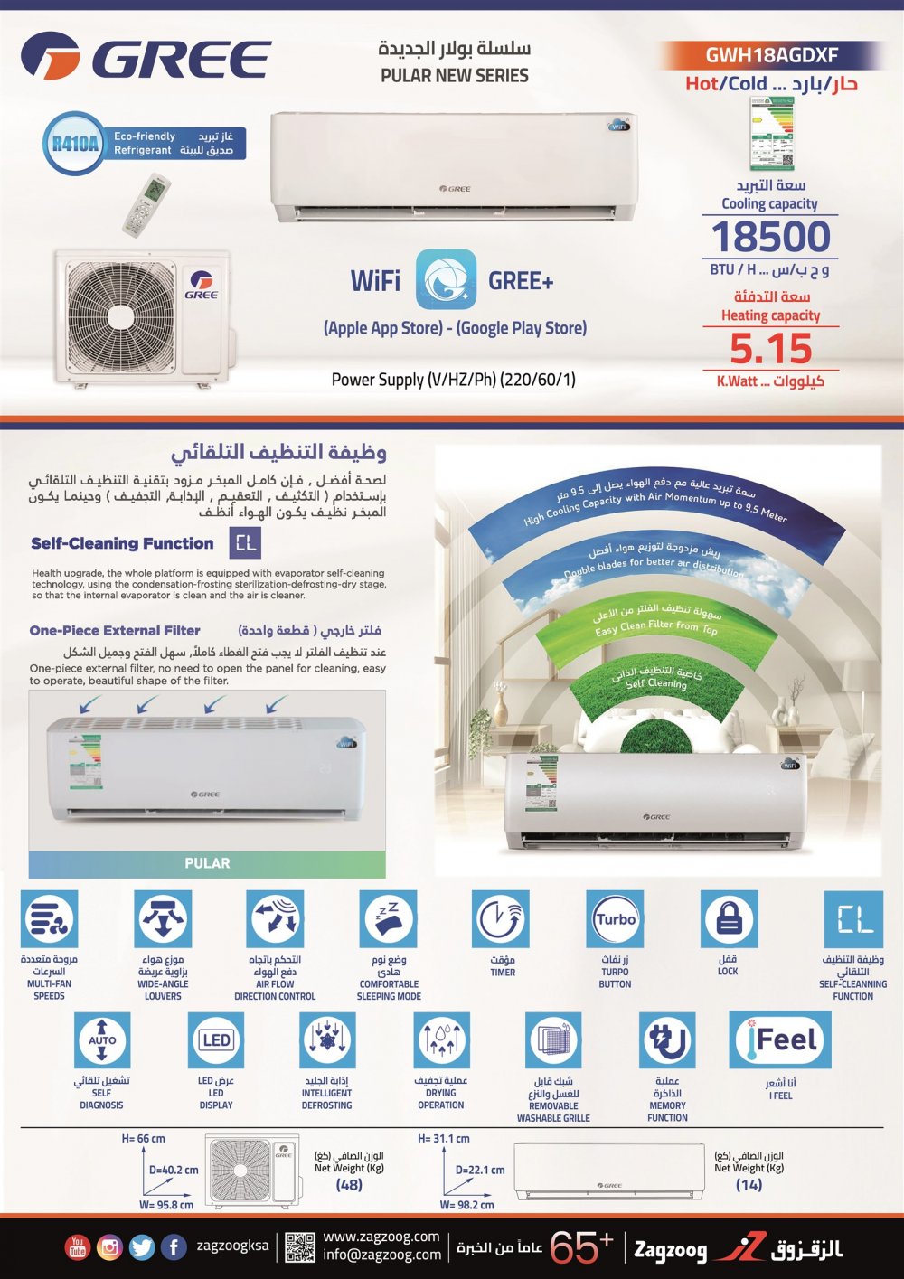 مكيف جرى جدارى 22100 وحدة ، واي فاي ، بارد