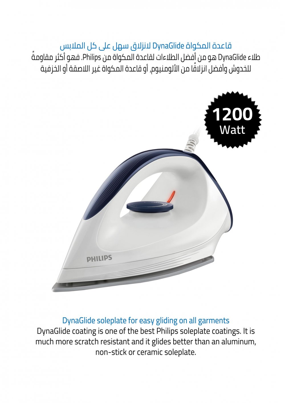 مكواة ملابس فيليبس بدون بخار، (1200) واط، القاعدة مطلية