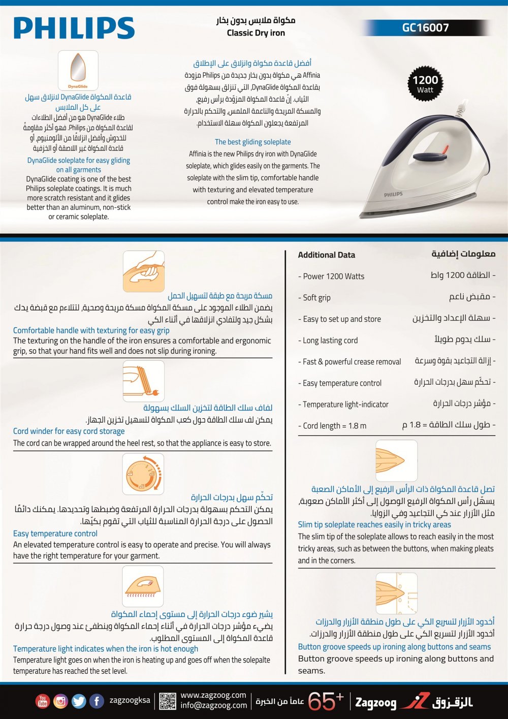 مكواة ملابس فيليبس بدون بخار، (1000) واط، القاعدة من الألمنيوم