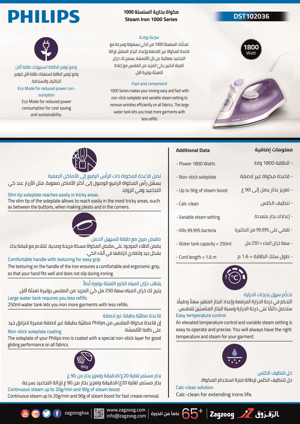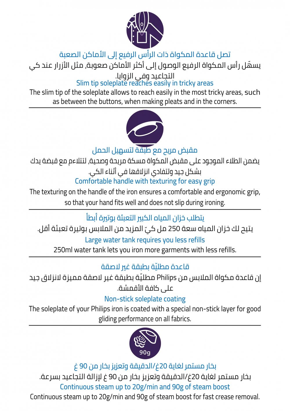 مكواة ملابس فيليبس بخارية، (1800) واط، القاعدة غير لاصقة