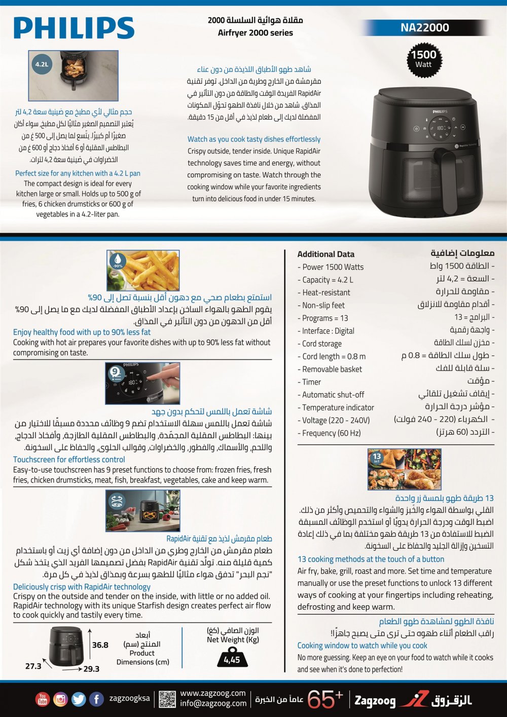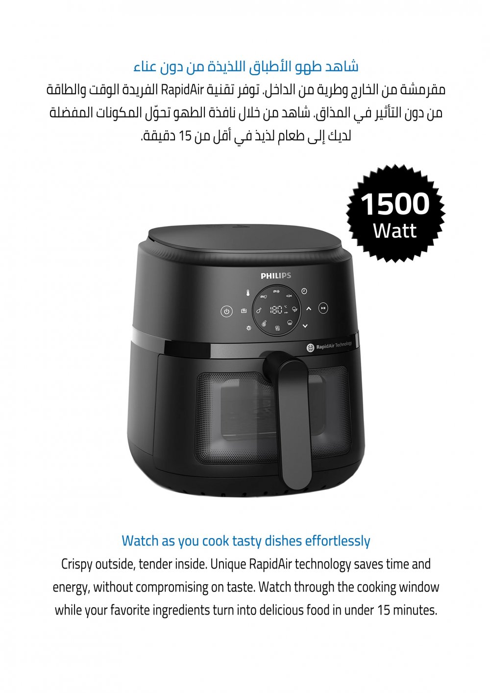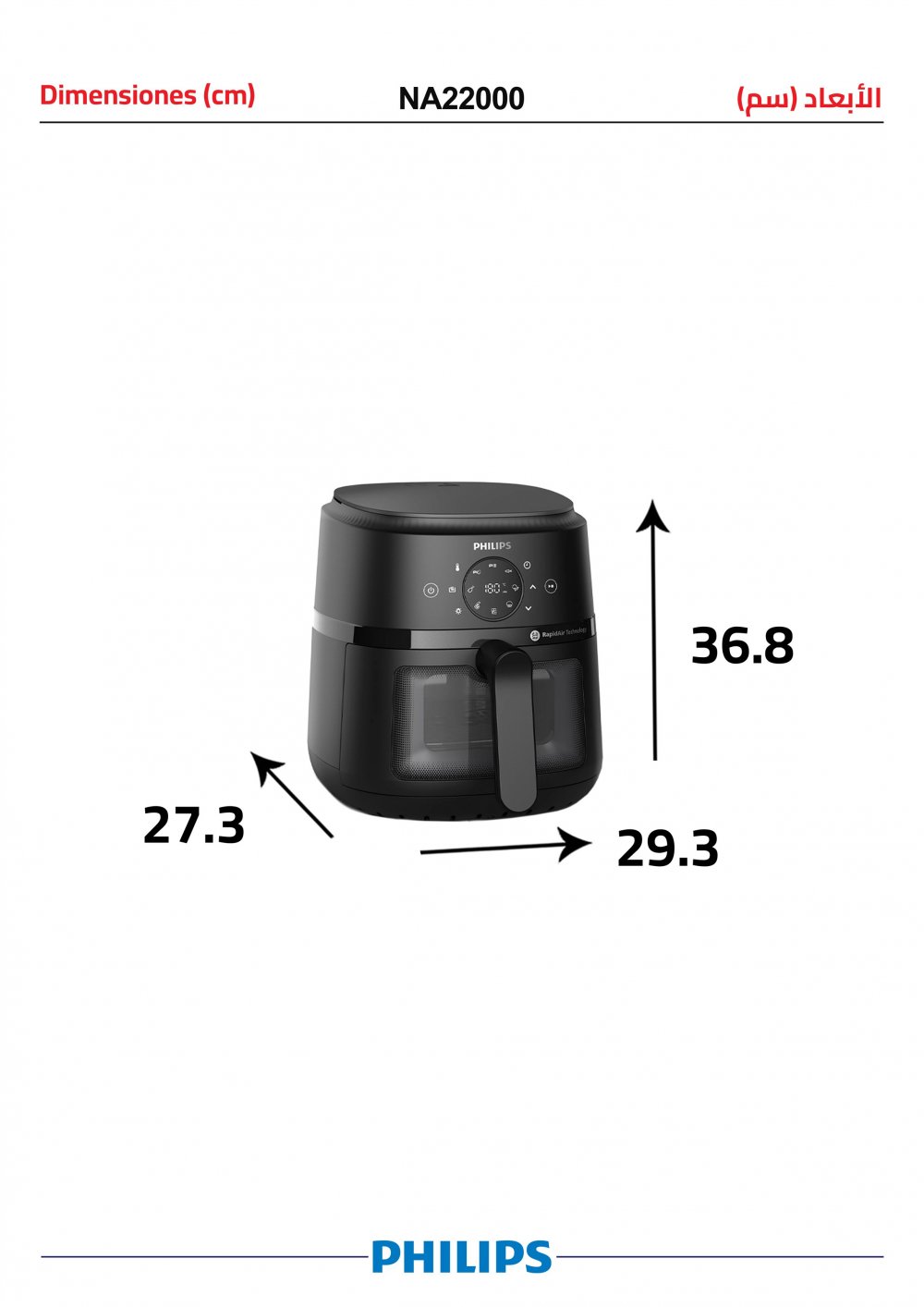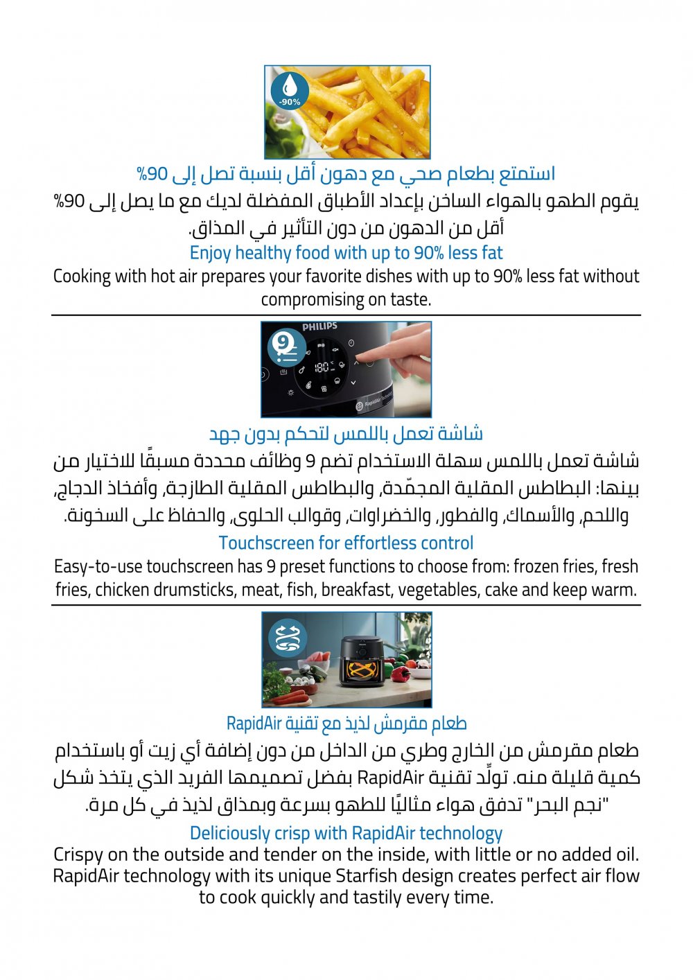 مقلاة هوائية فيليبس، (2750) واط، (9) لتر، (8) برامج ، سلتين