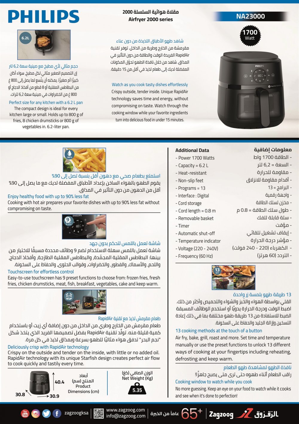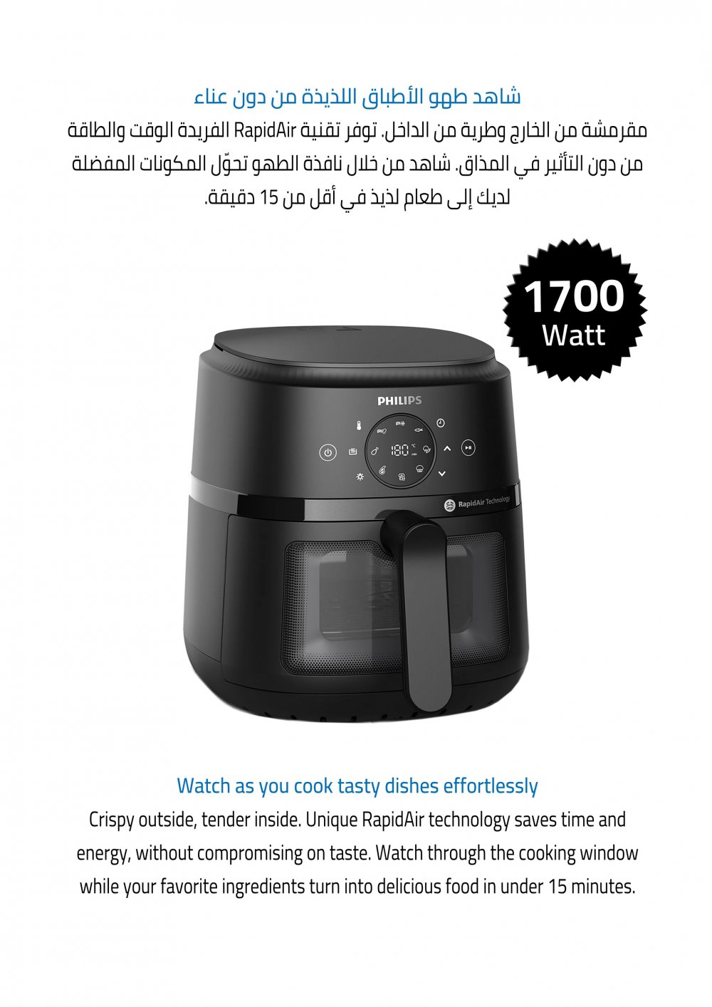 مقلاة هوائية فيليبس، (1700) واط، (6.2) لتر، (13) برنامج