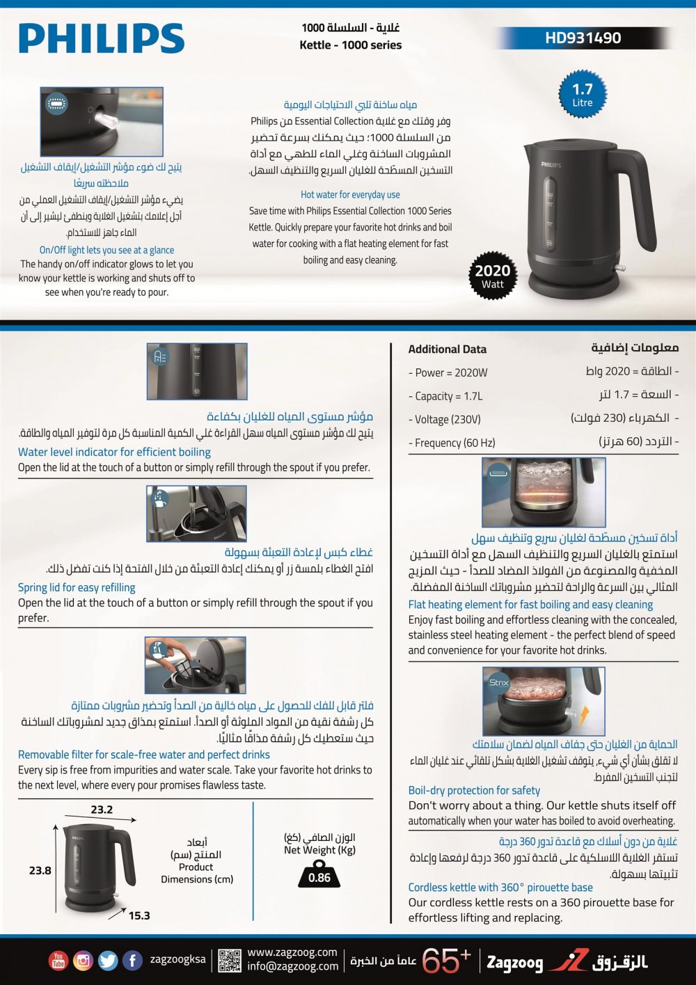 غلاية فيليبس، (2020) واط، بسعة (1.7) لتر