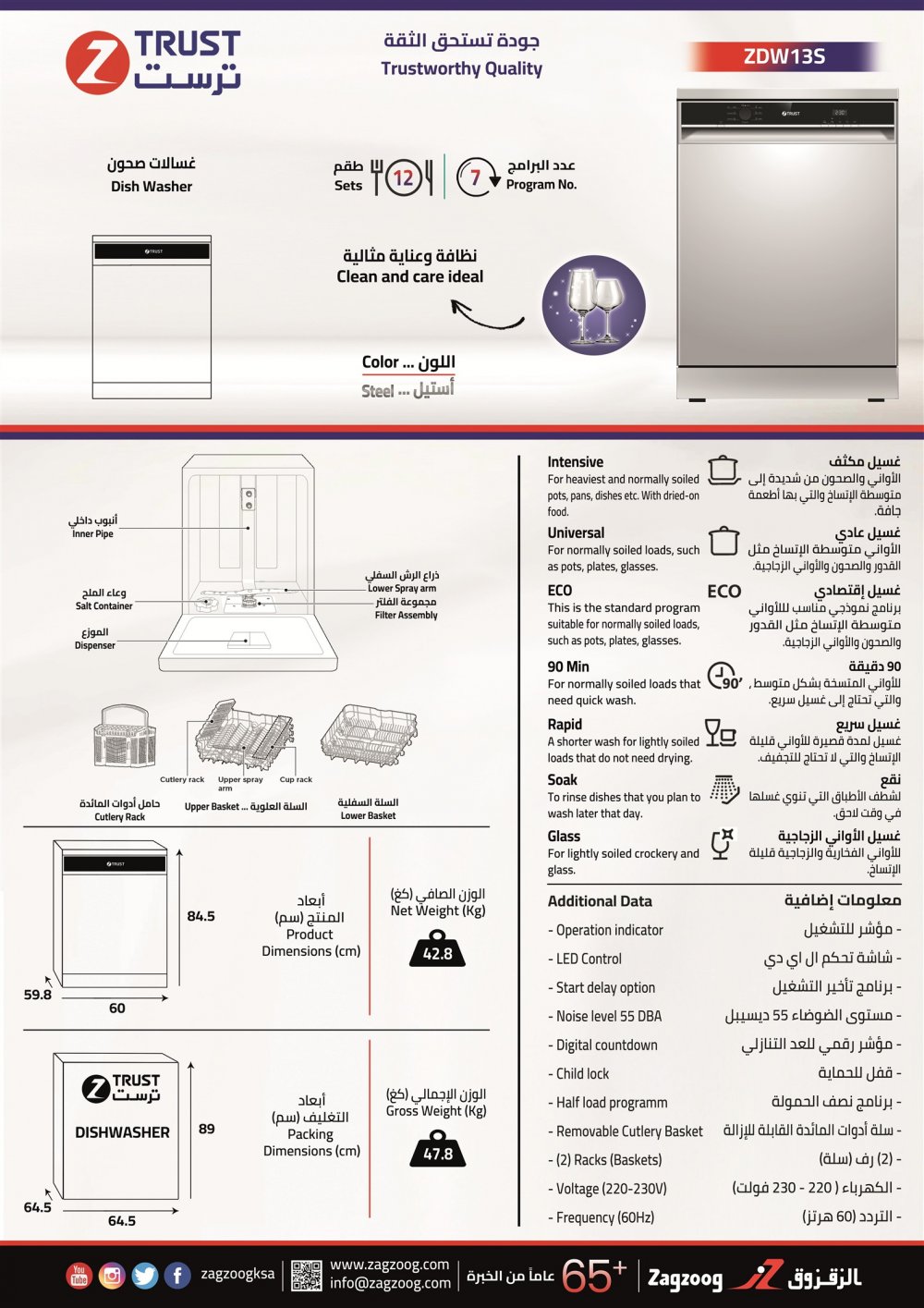 غسالة صحون ز.ترست ، 7برامج ، 12طقم ، شاشة عرض - أستيل