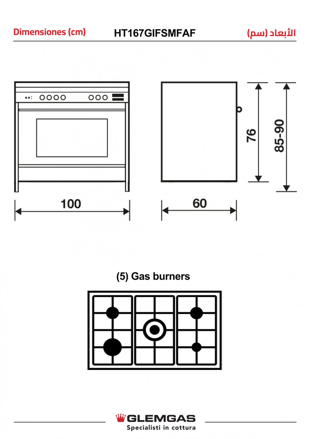Cooker 60X90, (5) Gas Burn., Full Safety