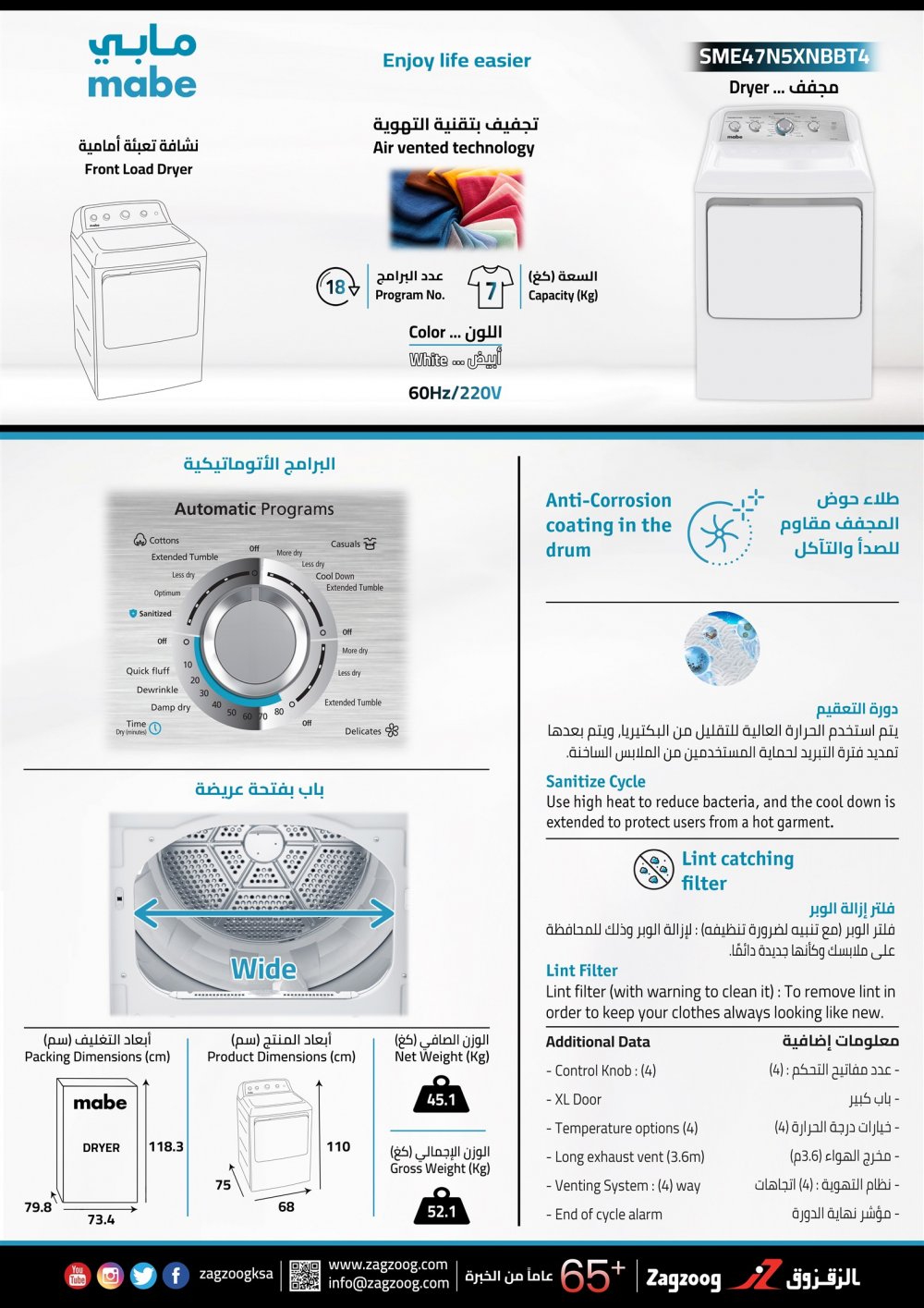 Front/Load Dryr (7) Kg, (18) Programs, (4) Knobs