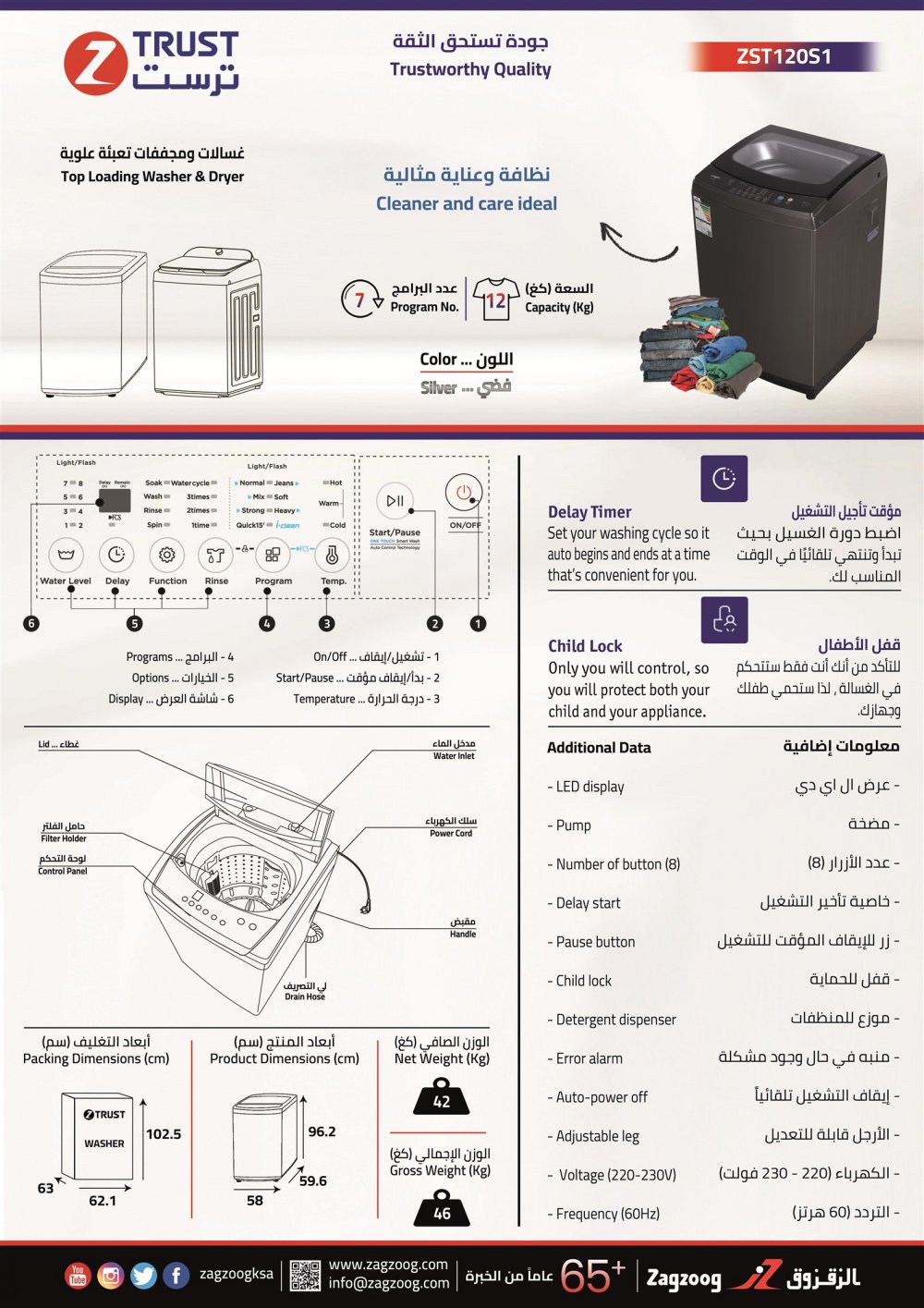 Top/Load Washer (12)Kg, (7) Programs, Pump